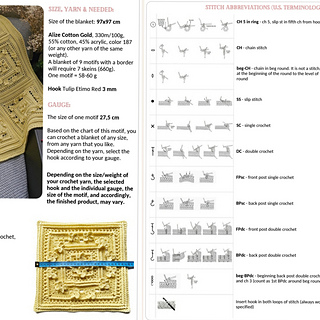 A blanket of 9 motifs with a border will require 7 skeins (660g).