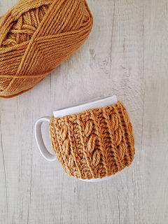 This project is simple to fit for any standard cup, and you don’t need lots of yarn. You can make this fairly quick and use up your leftover yarn. Perfect project for a last-minute gift!