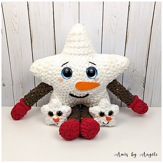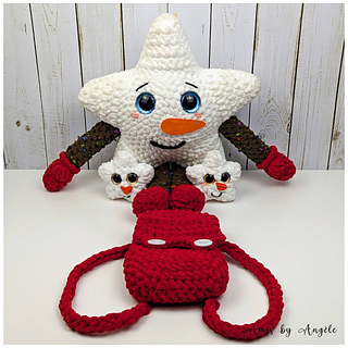 This pattern is for a cute snowman star with a little backpack to hold the baby snowmen!