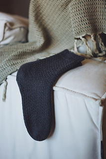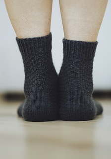 Worked cuff down, the socks combine a calm surface with thoughtful construction. The dotted texture flows naturally into a clean, wedge-shaped heel, where smooth stockinette highlights the structure and fit. The result is a pair of socks that feels simple at first glance, yet reveals depth and motion as you knit.