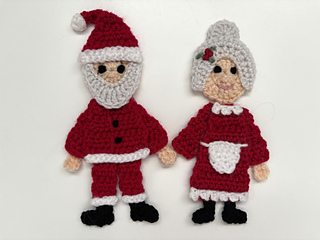 Using a 3.5mm hook Santa will be approx.17 cm high & 9cm wide. Mrs claus will be approx 16.5cm high & 9cm wide.