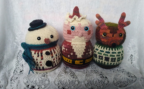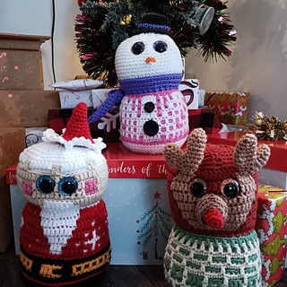 Santa and Friends is an overlay mosaic crochet stuffy set worked in the round! A cute addition to match the season.