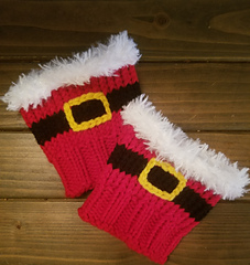 Super cute Santa boot cuffs perfect for keeping legs warm while shopping, caroling, visiting. A fun accessory to your holiday wardrobe.