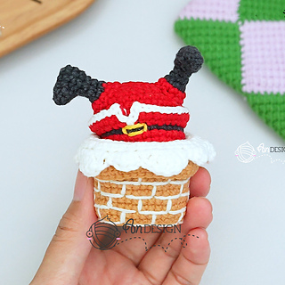 - 4-ply cotton yarn: brown/beige (chimney), white (snow, trim), red (Santa), black (boots), yellow (belt), skin color (optional)