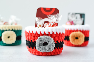 This crochet pattern is written in U.S. crochet terms, complete with clear instructions and video tutorial to help you along the way. Santa Gift Buddy is crocheted in the round/continuous spirals without joining the rounds. I suggest using a stitch marker or different color yarn to keep track of each round. Santa Gift Buddy is crocheted in super bulky chenille yarn and is approximately 3 inches tall. Be aware that size may vary depending on the yarn and hook size used. Gauge is not particularly important, just be consistent with the tension you are using. And most importantly, have fun!