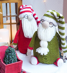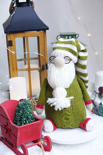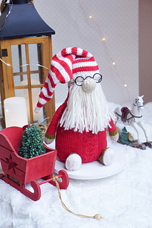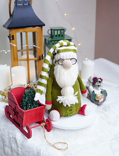 First, we’ll knit the head and body in one piece bottom-up, then the arms and legs. After that, we’ll sew and stuff them, and finally assemble all the parts together. Then we make a beard and knit a hat.
