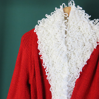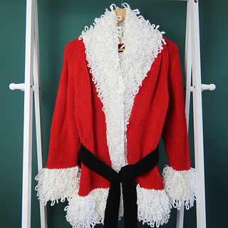 This Santa style jacket and hat combo features a cosy (and easier than it looks!) fur stitch collar and cuffs and optional moss stitch belt. The jacket is designed in a raglan style featuring full-fashioned decreases. The chunky yarn also means that this project knits up quite quickly - an ideal last minute Christmas project! Techniques include knit and purl stitches, fur stitch and full-fashioned decreases.