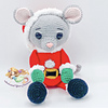 Santa Mouse measures 7 in/18 cm when using the recommended hook size, yarn and using the yarn under method. I used 5 different colors of yarn, embroidery thread and added a pom pom to his belly.