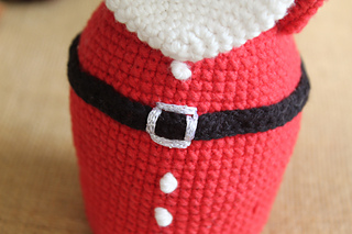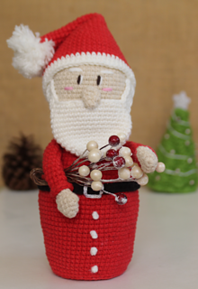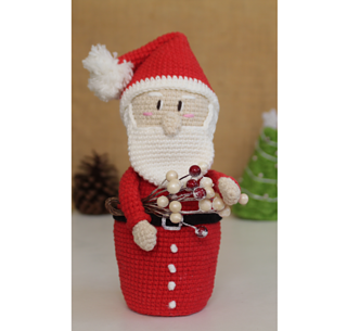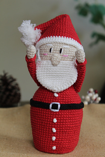 The first doll in this bundle is Santa Claus. He’s approximately 19cm tall from the bottom to the top of his hat. His outfit resembles a long red cape that covers his legs and feet. This design is simple and minimalist, and even the stitches I used are classic crochet stitches. There’snothing complicated about it; it’s ideal for beginners. Santa has a flat base that allows him to stand upright, and his arms are sewn using the “yarn-through method”, which uses a long piece of yarn and a darning needle to sew the limbs to the body. In this way, Santa can move his arms and make gestures.