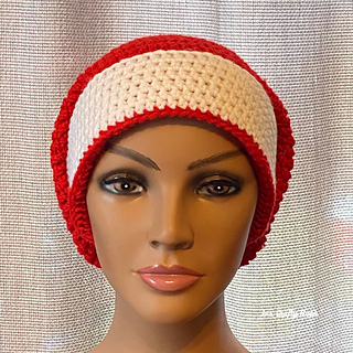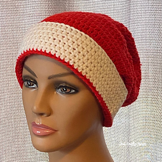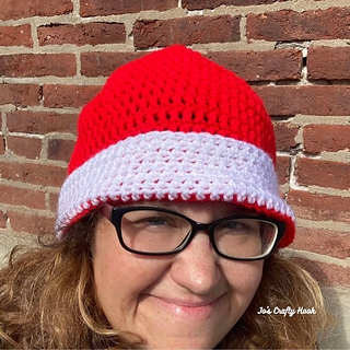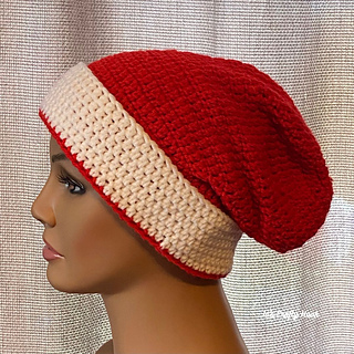 The Santa Sack Cap is a slouchy hat design that looks like Santa’s gift sack.