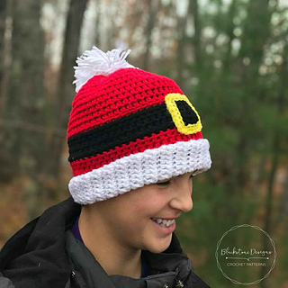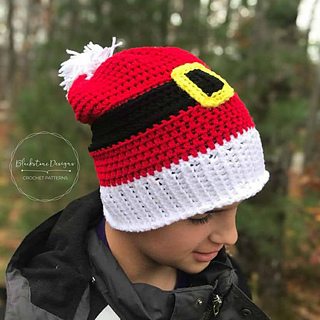 Dress up your holiday wear with this Santa Slouch hat! Or make it in Green and represent the elves! You can also roll up the brim for a beanie and there’s instructions included for a messy bun hat!