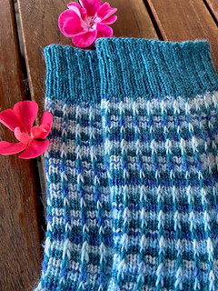 This pattern is perfect for using up leftover sock yarn. In my example, I used three different yarns, but you can easily use more or fewer — just whatever bits and pieces you have lying around that aren’t quite enough for a full pair of socks. The pattern includes weight information to give you a rough idea of how much yarn you’ll need.