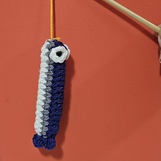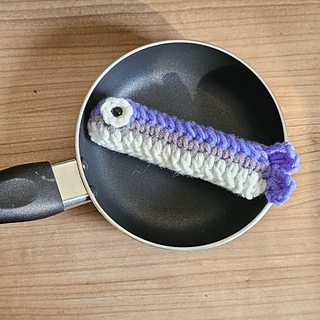 I use medium weight yarn and a 3mm hook. If you want your sardine to be the same size as mine, use any yarn that can fit well on a 3mm/No.5 hook