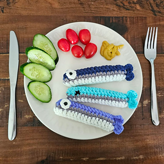Click here for free pattern tutorial: Crochet Sardines Tutorial