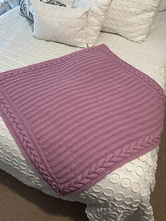 The faux rib/garter texture of the Saturation Blanket creates a squishy, cozy fabric. The edges of the blanket feature beautiful braided cables that entwine at the corners and continue along all four sides of the blanket, giving it an elegant, cohesive look. With plenty of rest rows and pattern interest, this blanket will fly off the needles.