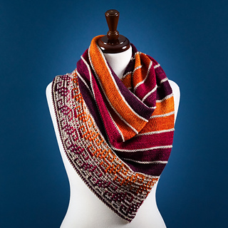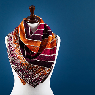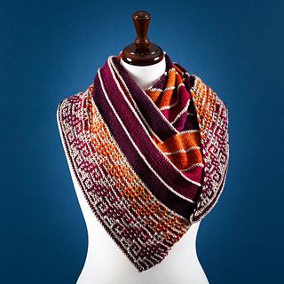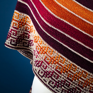 A busy week always has one dreaming of the weekend, and Saturday Evening is that magical time. The work week is over, the new week has yet to begin, and the only decision to make is how best to relax. This shawl is a Saturday Evening in stitches. Easy, rhythmic knitting comes together with frequent color changes for a ‘one more stripe’ knit that you won’t want to put down. The final border combines simple slipped stitches with graphic patterning and gradient color changes for an eye-catching accessory that’s effortless to wear any night of the week.