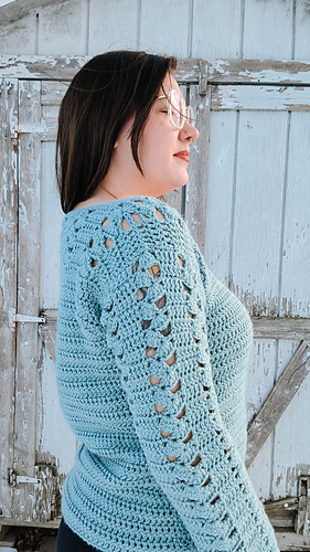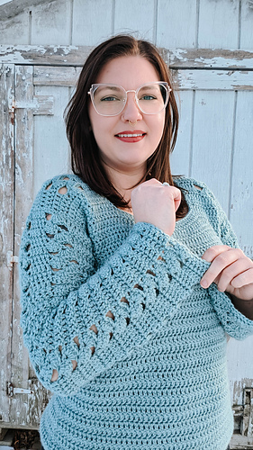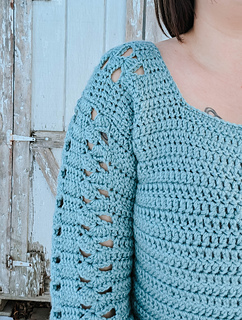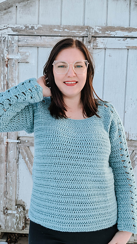 The Savanna Sweater is a timeless transitional piece designed\ with everyday wear in mind. The relaxed fit is slightly oversized for comfort without being cumbersome. A contrasting stitch pattern at the top of the shoulders and back, give a dynamic mix of texture. The slightly opaque fabric of the bodice is breathable and inviting, combined with the pop of shell stitches give sophistication to the design. Relaxed fit sleeves embellished with the same shell design sets this sweater apart from the rest in all the right ways. This quick project can be made in just a few days as the perfect weekend crochet pattern.