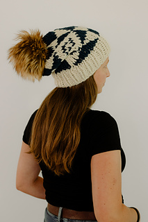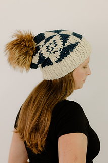 - Special Features: Bold sawtooth motif, super bulky yarn for a quick knit, easily customizable with a pom-pom.