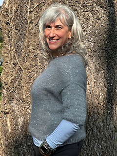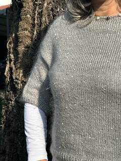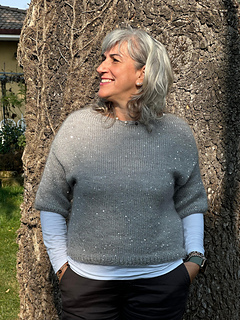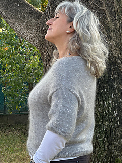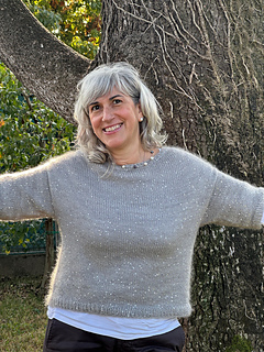 Sbarlush is a top-down sweater featuring a shoulder construction inspired by the Contiguous method. A series of short rows raises the back neckline, enhancing the fit around the neck. The work continues until the full shoulder length is achieved, after which the stitches are separated to create the armhole openings. Once the desired length, corresponding to the sleeve width, is reached, the work is joined in the round to complete the body. The sleeves are worked by picking up stitches along the armhole edge.
