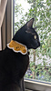 There are many cute crochet cat collars on the internet, but 99% of them use string ties. As my cat likes to play with string, I did not want to risk her pulling on and choking herself with the dangling ties. As I could not find any patterns with safe closures, I decided to write one myself… Now, my cat can be fancy while still using her breakaway collar!