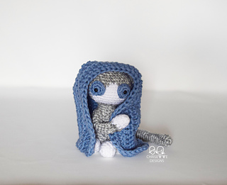 Depending on your yarn and tension, the finished doll is about 5 inches (12.7 cm) tall, and 2.25 inches (5.7 cm) wide.