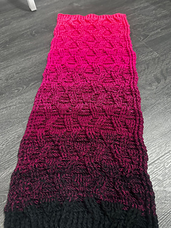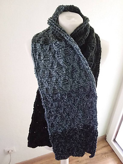 The scarf can be crocheted in any size, as the rows are repeated. Please note that if you use a different wool, a different needle size or generally crochet looser/tighter, the size may vary.