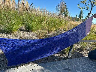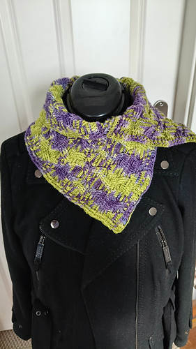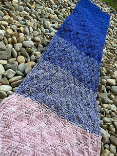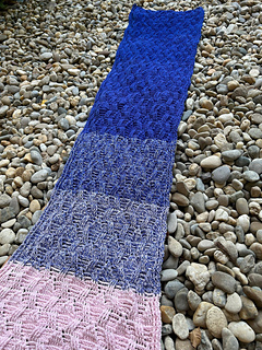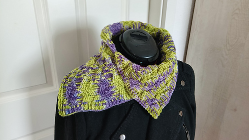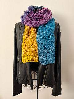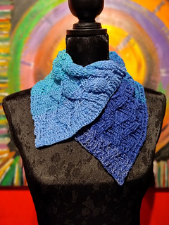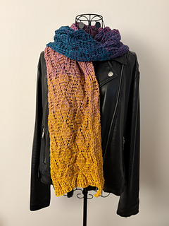 The scarf on the cover picture has the following dimensions: 24 x 150 cm. The folding scarf has following dimensions: 23 x 64 cm.