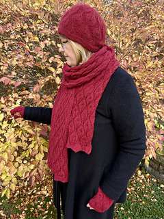 On photo presented with Hat with Leaves and Fingerless Mitts with Leaves.
