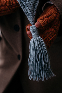 A cozy unisex scarf with tassels, worked flat in stretchy 3×3 rib for adults of any age.