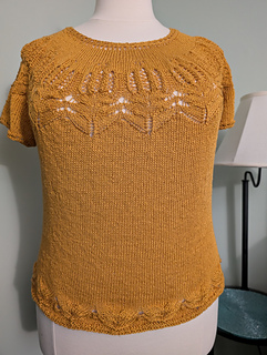 A lightweight summer tee with a blooming lace yoke and a clean stockinette body.