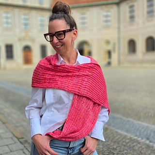 Was diesen Schal aber wirklich besonders macht, ist für mich die Garnwahl. Ich spiele hier unglaublich gern: schlicht und edel oder mit einem feinen Glitzer-Beilaufgarn, das das Licht einfängt und dem Ganzen eine ganz besondere Tiefe verleiht. So wird jeder Schal ein kleines Unikat und ein Begleiter, der sich sowohl im Alltag als auch zu besonderen Momenten wunderbar tragen lässt.