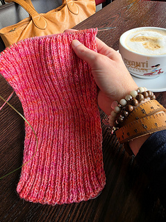 Am Ende kehre ich wieder zum Rippenmuster zurück. Wie ein ruhiger Rahmen, der alles zusammenhält und dem Schal einen stimmigen Abschluss gibt.