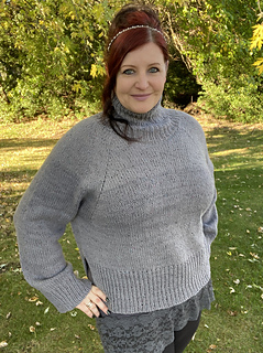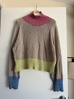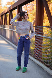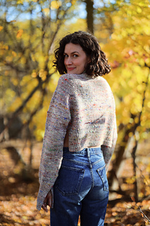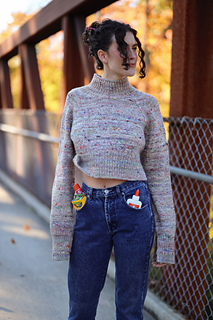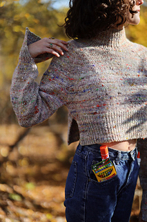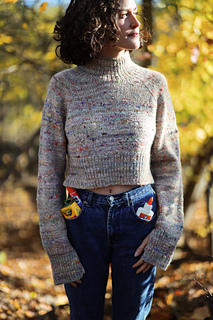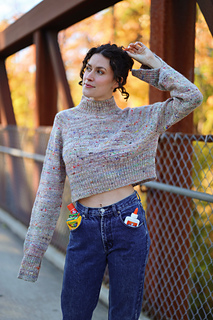 A fresh box of crayons in tow, pencils are sharpened, and your new School Supply Sweater is ready for class! This sweater is knit from the top down with a gushy mock neck, big raglan seams, and an exaggerated crop and split hem for a fun waist reveal.