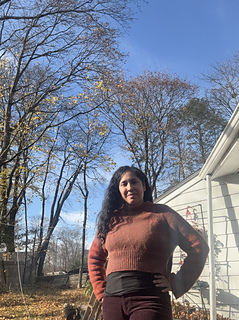 This garment is meant to be worn with 4-6” positive ease. I am pictured wearing the garment with 5” positive ease.