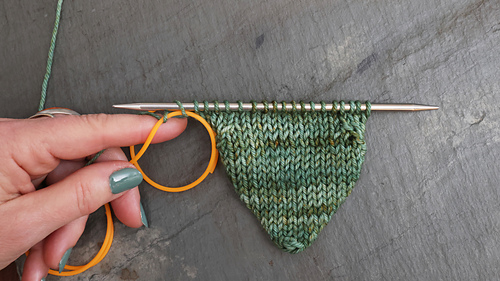 The construction starts at the top with Judy’s Magic Cast On and then is worked flat in stockinette stitch down to the neck. Then scarf tails are cast onto a long piece of stitch saver and worked outwards with short rows to shape the scarf tips. Finish it off with a tidy I-cord bind-off with your needles OR an I-Cord tool!