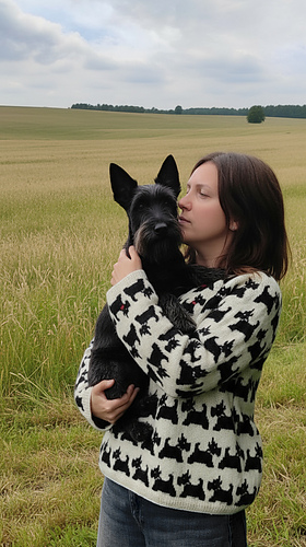 The Scottie Sweater is an oversized, top-down sweater offered in ten adult sizes.