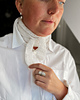 This scarf comes in two sizes: the small version is a bit narrower and shorter compared to the larger one. The scarf is reversible.