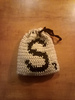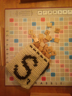 This pattern produces a square 6” x 6” drawstring bag decorated like a scrabble tile, that easily holds the standard 100 tiles in a scrabble set. I provided a chart for the letter S, (for scrabble) but it could easily be customized to be your initial or any letter you want.