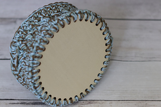 It’s a quick project that you will work using a premade base. I this case, I used a six inch wooden basket bottom that has the holes pre drilled into it. But you may use fabric, leather or another medium for your bottom!