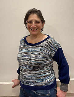 Please note: the basic pattern for this sweater is available for free on my blog. However, the paid version of the pattern includes includes an exclusive (scrap) yarn guide in which I explain exactly how I achieved the particular look of my own sample. I like to call it a “seamless multicolored look with tiny scraps”. The yarn guide also includes instructions for other color options, such as a striped version and a gradient striped version.