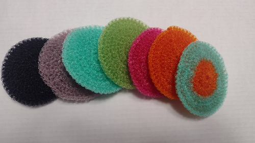 One skein of Stitch, Soak, Scrub Yarn makes around three scrubbies with some leftover.