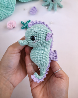 – PDF file in ENGLISH with PATTERNS to reproduce the animals Pufferfish, Seahorse, Dolphin, Octopus and Sea Turtle.