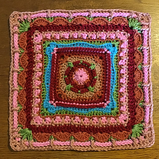 This afghan block comes in two sizes - a smaller single-coloured version and a larger multi-coloured square. Both are heavily textured and interesting to crochet as every round is different. There is a separate file for each version and each set of instructions allows for a smooth transition between rounds, for the neatest possible result. There are clear photographic illustrations for every round.
