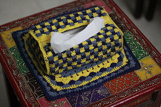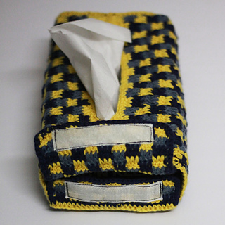 Inspired by this uninspired tissue box I decided to make the Sea ‘n’ Sunshine tissue box cover! It’s a fitted cover done with the Mini Check Plaid Stitch. I feel it can be aptly categorized as an advanced pattern but I still feel that a very ambitious beginner can tackle it.