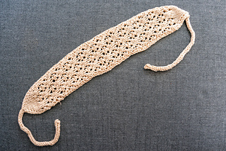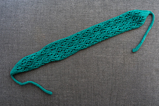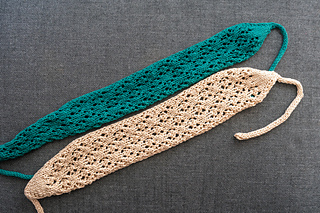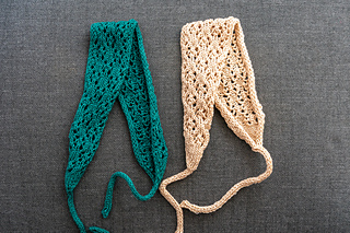 The Sea Turtle hairband is knitted in the Sea Turtle lace pattern. It is started with an I-cord, followed by increases until we reach the full width. From there, we continue working in the lace pattern until the headband reaches the desired length. It is finished with decreases and another I-cord.