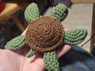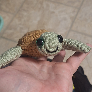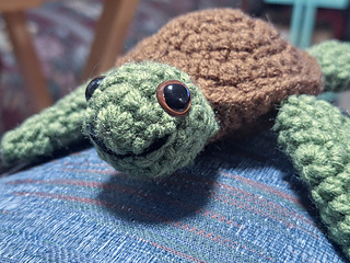 Made with only basic stitches, this is a pretty beginner-friendly pattern, besides some slightly fiddly assembly steps. I think the resulting turtle is very cute, though!