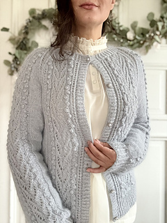 It is worked bottom-up, back and forth, until the body reaches underarm length. The body is then set aside while the sleeves are worked bottom-up on circular needles. The sleeves and body are joined onto one needle and worked together with raglan decreases. Finally, the neckline and button bands are worked in twisted rib.