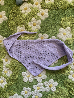 The seashore bandana is a simple knit that you can wear in your hair or around your neck. It is knit sideways with two rates of increases and decreases to make an elongated triangle.