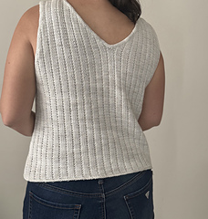 A breezy, V-neck top with effortless summer style. The Seaside Tank features mirrored V-neck on front and back, a stretchy 3x1 broken rib, and clean I-cord edging. Knit with soft and breathable cotton, it’s perfect for warm weather layering. Simple, chic, and endlessly wearable.
