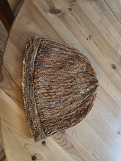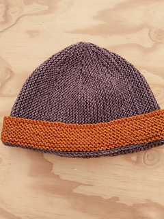 The sample shown has a 18.5” / 47 cm circumference to fit a head circumference of 21.5” / 54.5 cm with a doubled brim.